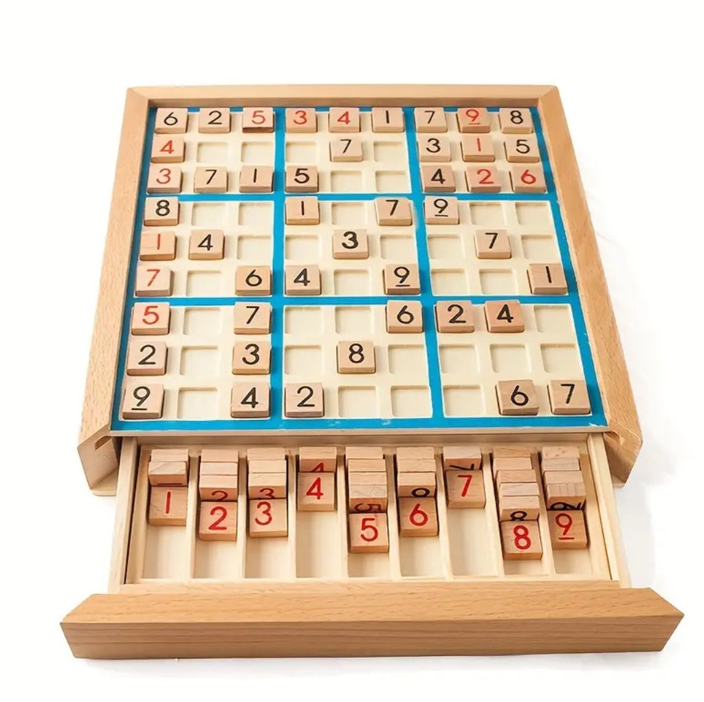 Solve sudoku puzzles easier with this wooden board. The drawer allows you to keep the number tiles secure. The game board includes a sudoku booklet with sudoku puzzles.
